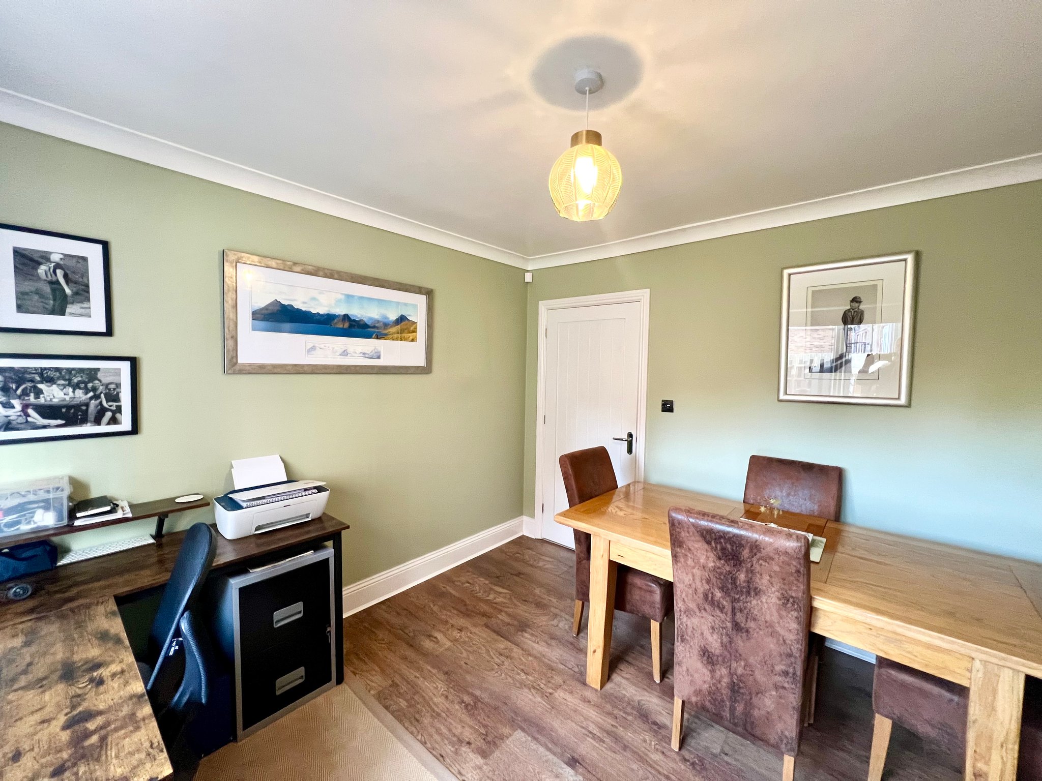 The dining room/4th bedroom  features wood-effect flooring, a side-facing window, radiator and single pendant light fitting. This versatile space can easily be used as a formal dining room, study or additional sitting area or 4th bedroom  offering flexibility to suit a variety of family needs.