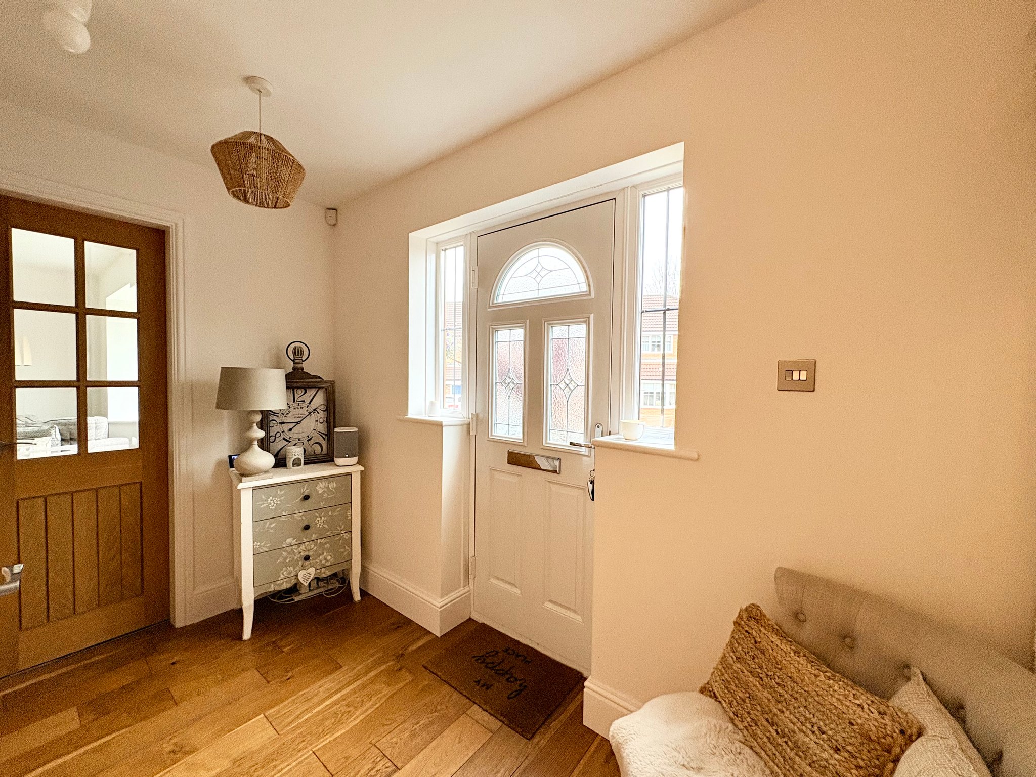 Entrance Hall - The entrance hall creates an immediate sense of quality and space, featuring an engineered wood floor and a useful storage cupboard. It provides access to the lounge, the impressive kitchen and family living space, the ground floor WC and the staircase rising to the first floor, making it both welcoming and highly practical for family living.