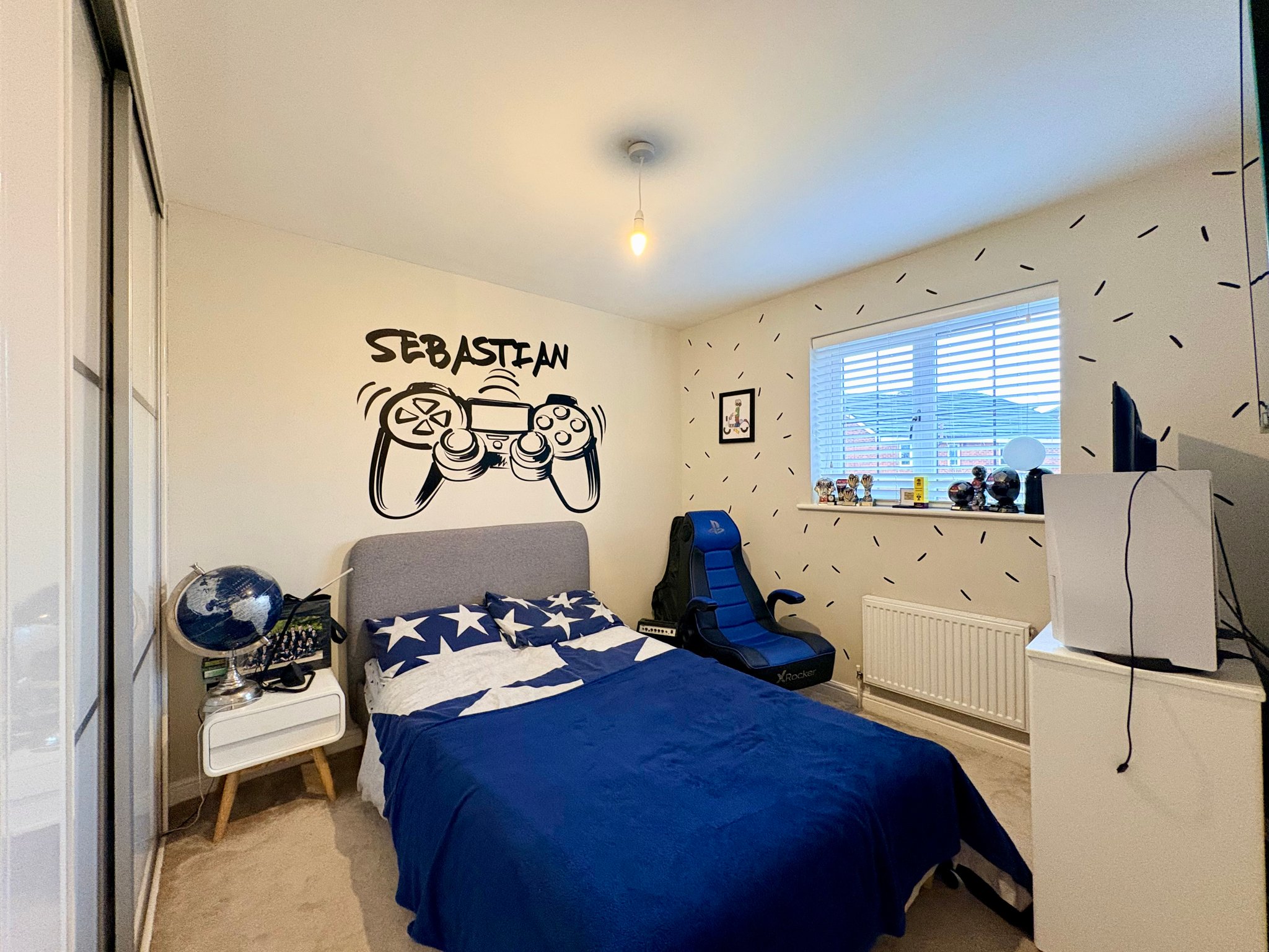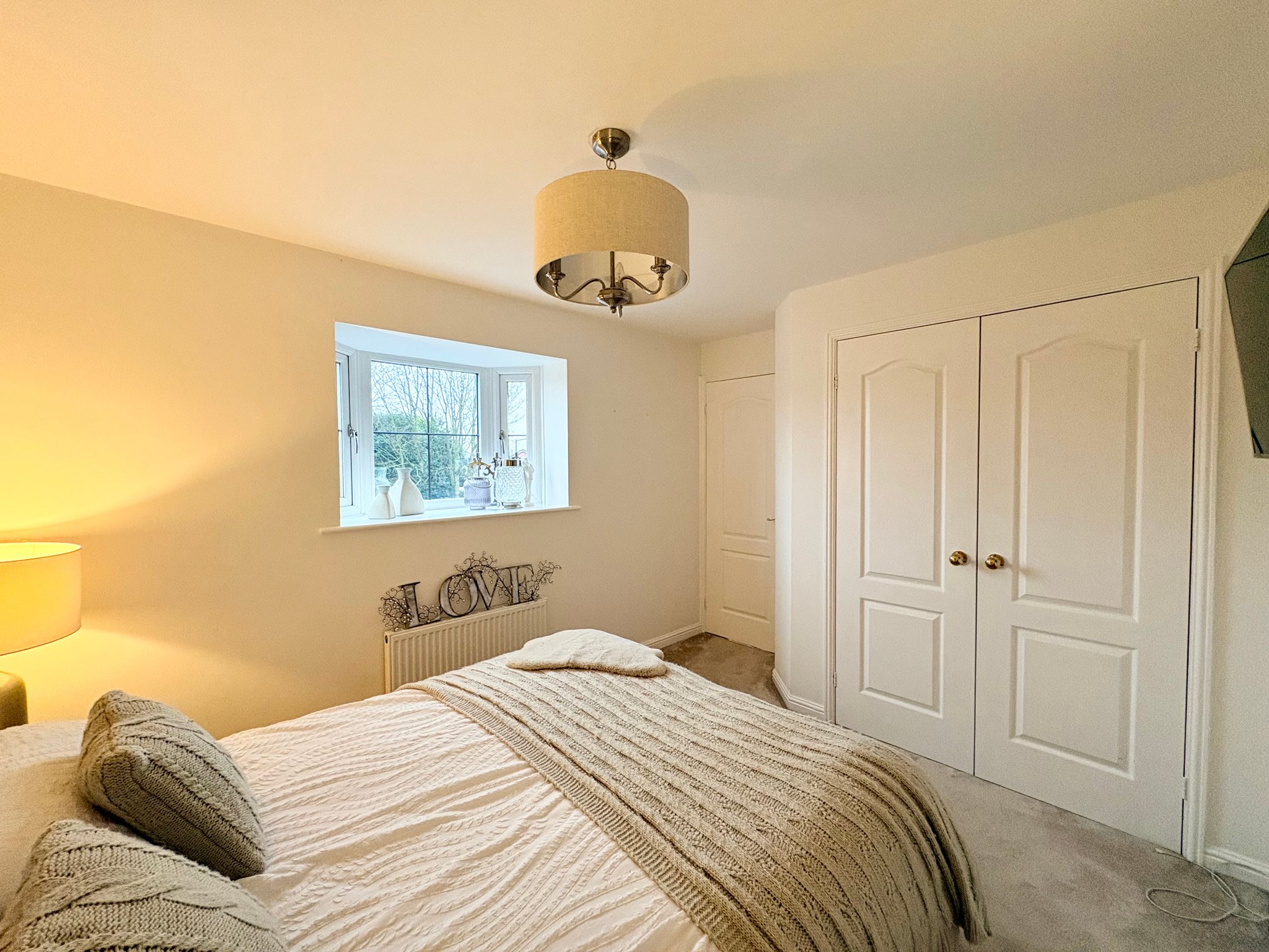 Principal Bedroom - The principal bedroom is a stylish, calm and generously proportioned retreat, finished with carpet to the floor, a radiator and a single pendant light fitting. Designed with comfort and luxury in mind, the room benefits from fitted wardrobes and direct access to a beautifully appointed ensuite shower room, providing a private space for homeowners.