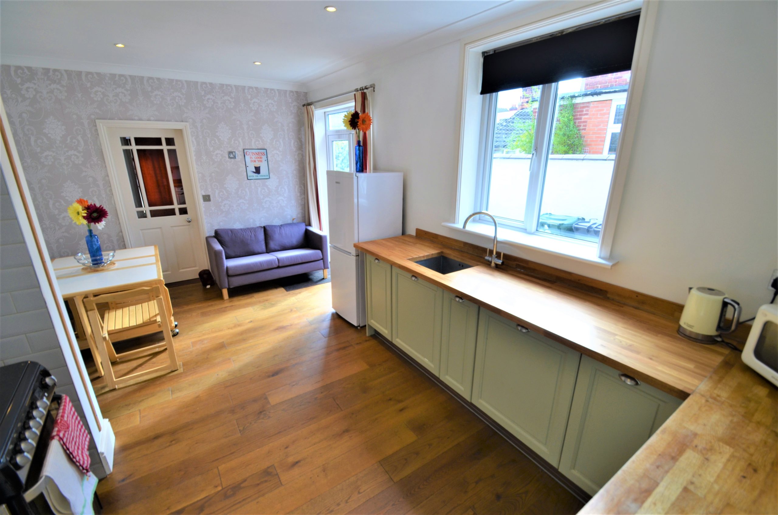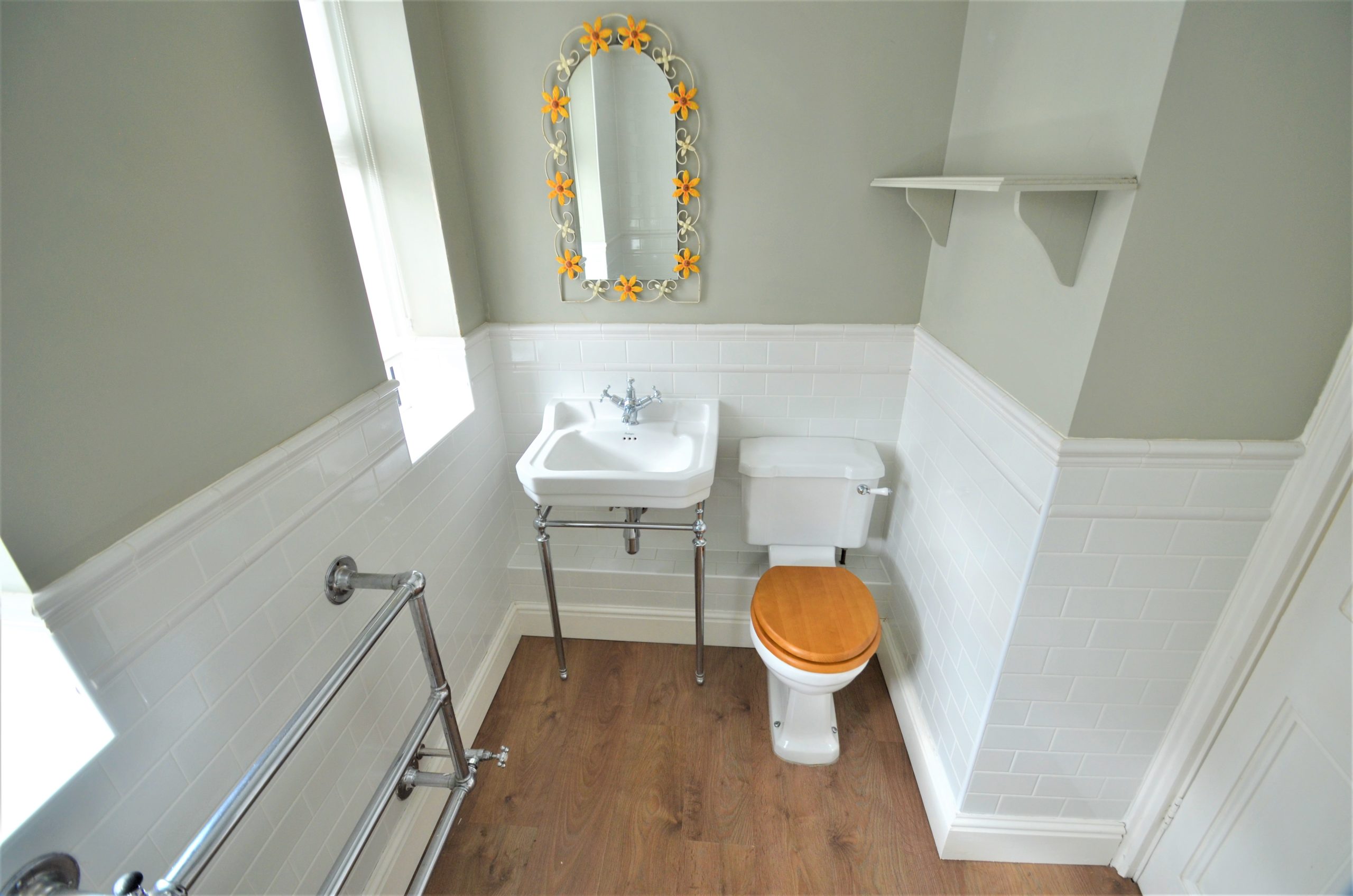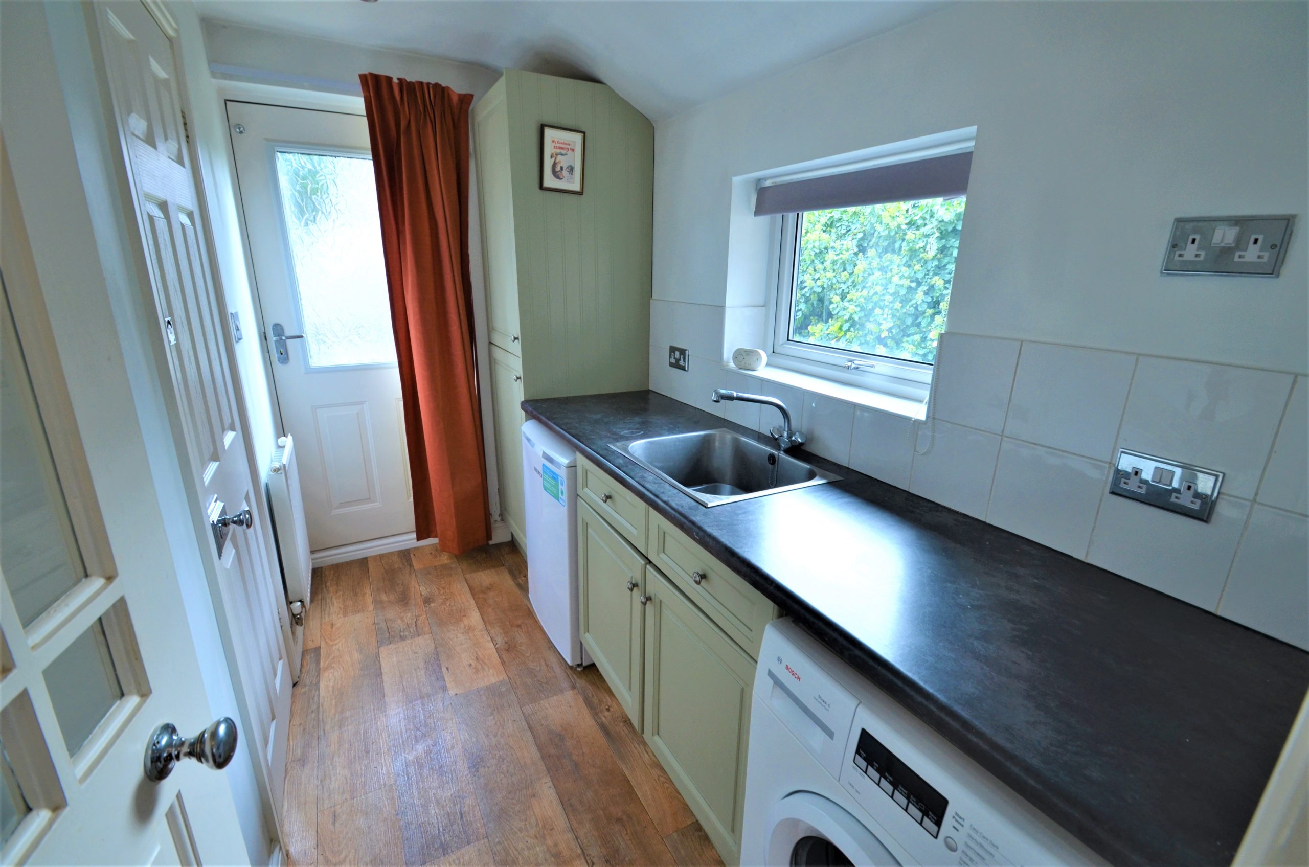 A great addition to this property is the utility area with space for a washing machine and tumble dryer, sink and a range of cupboards, a window overlooking the garden and rear door giving access to the garden. Separate W/C with hand basin and a further storage cupboard, lighting and finished with wooden flooring.