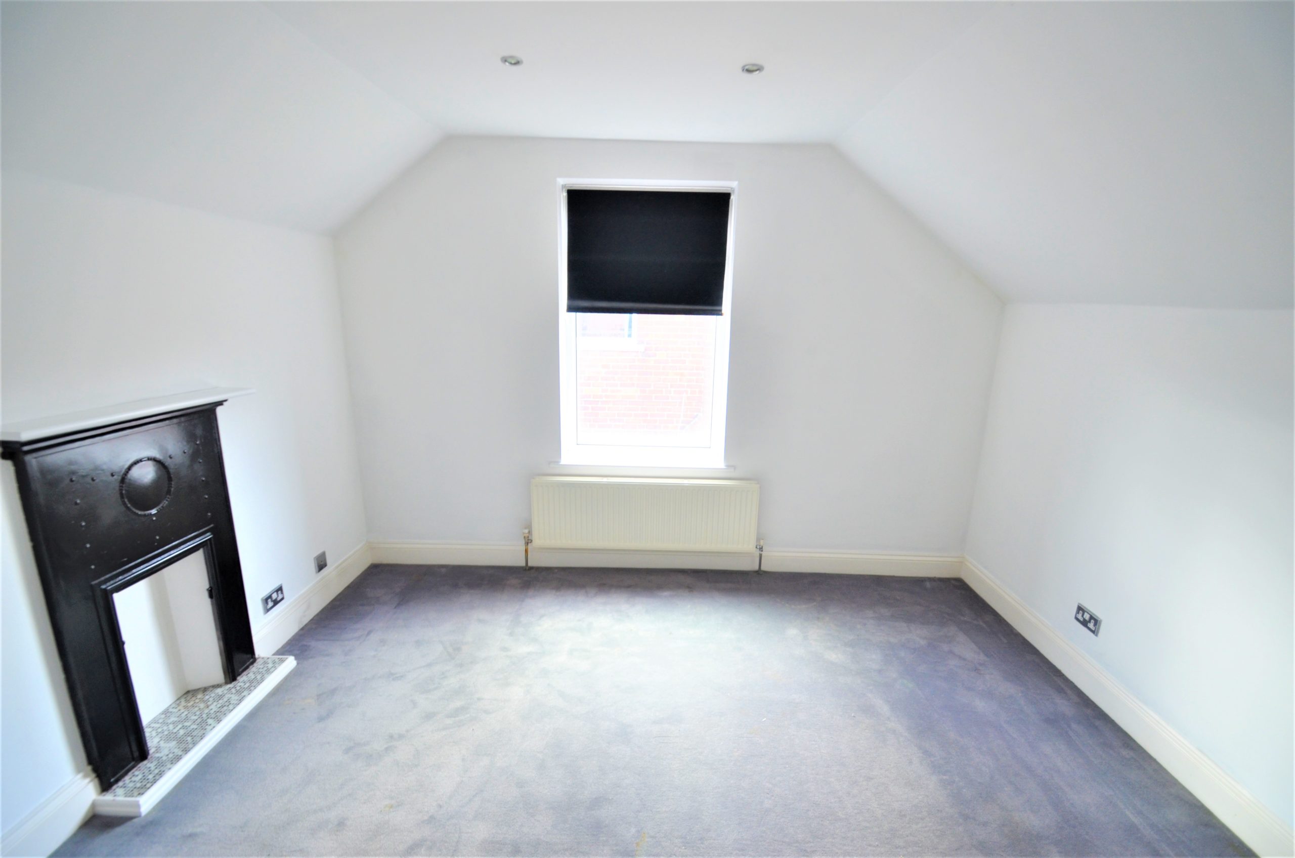 A final double bedroom with large window, feature fireplace, large walk in wardrobe space, spot lights, central heating radiator and fitted carpet. The landing space offers useful eves storage.