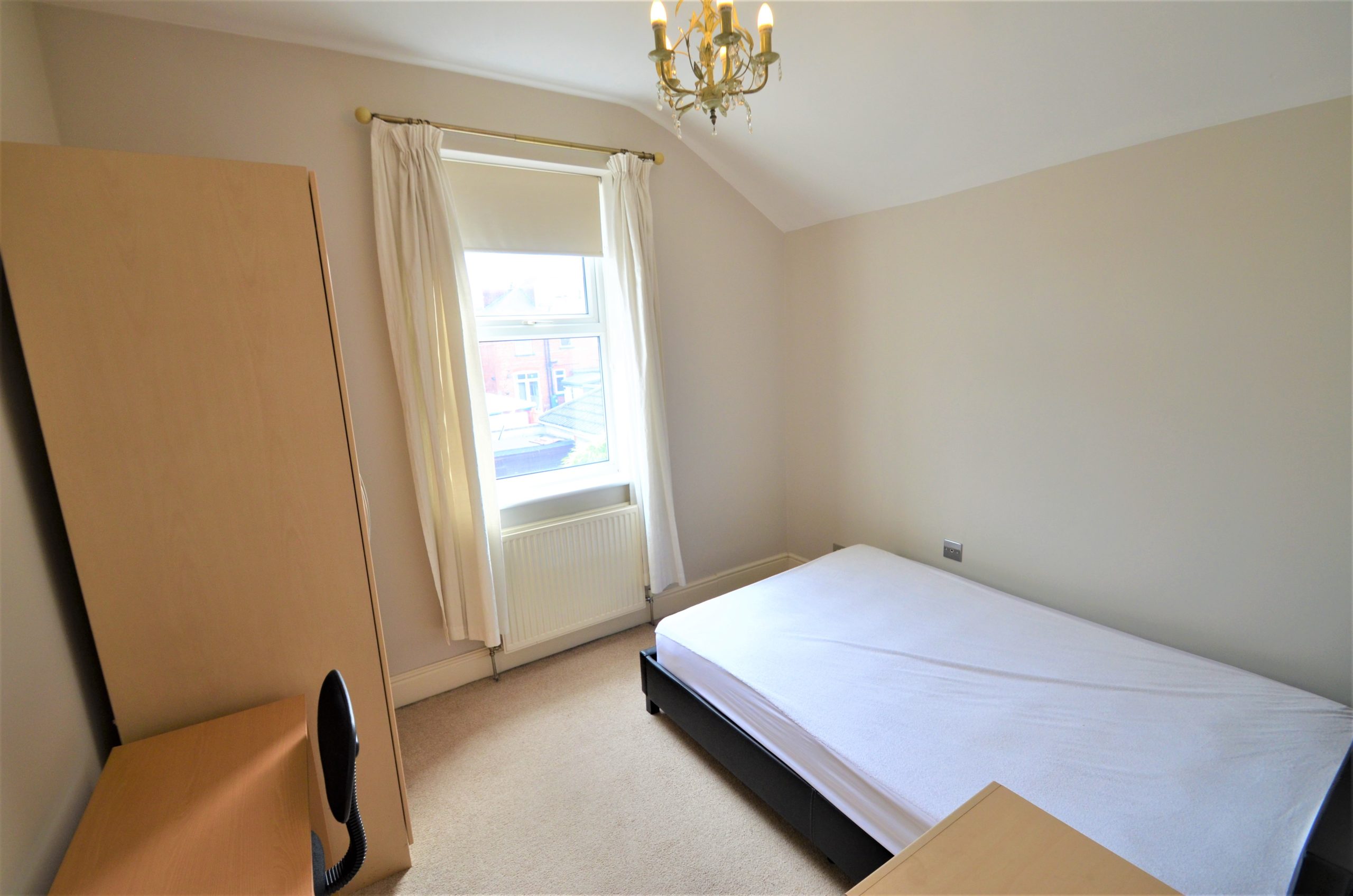 A further double bedroom with rear aspect window, single pendant light fitting, central heating radiator and finished with a fitted carpet.