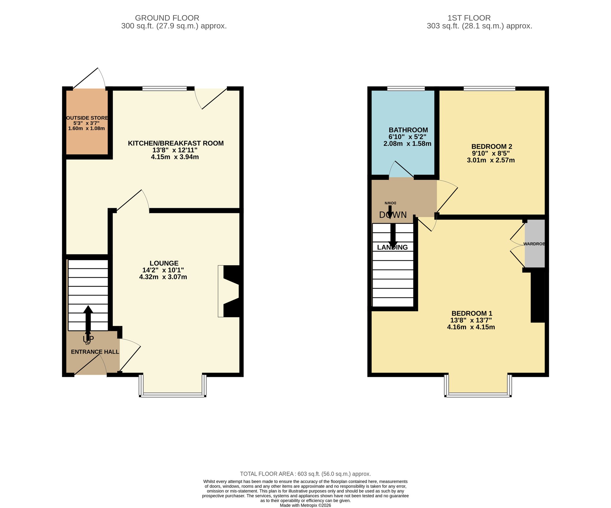 The landing is fitted with carpet, and single pendant light fitting, providing access to both bedrooms and the bathroom.