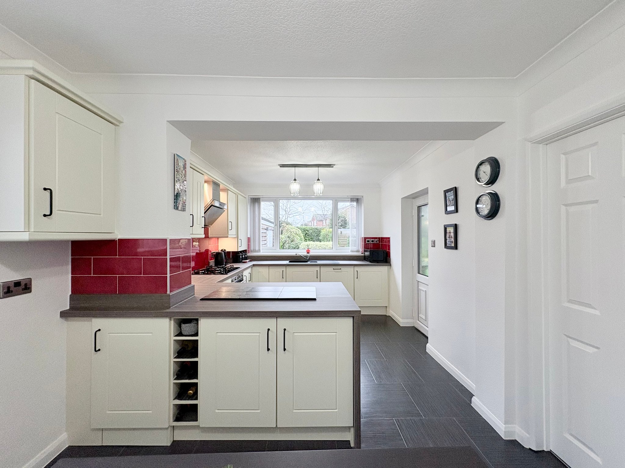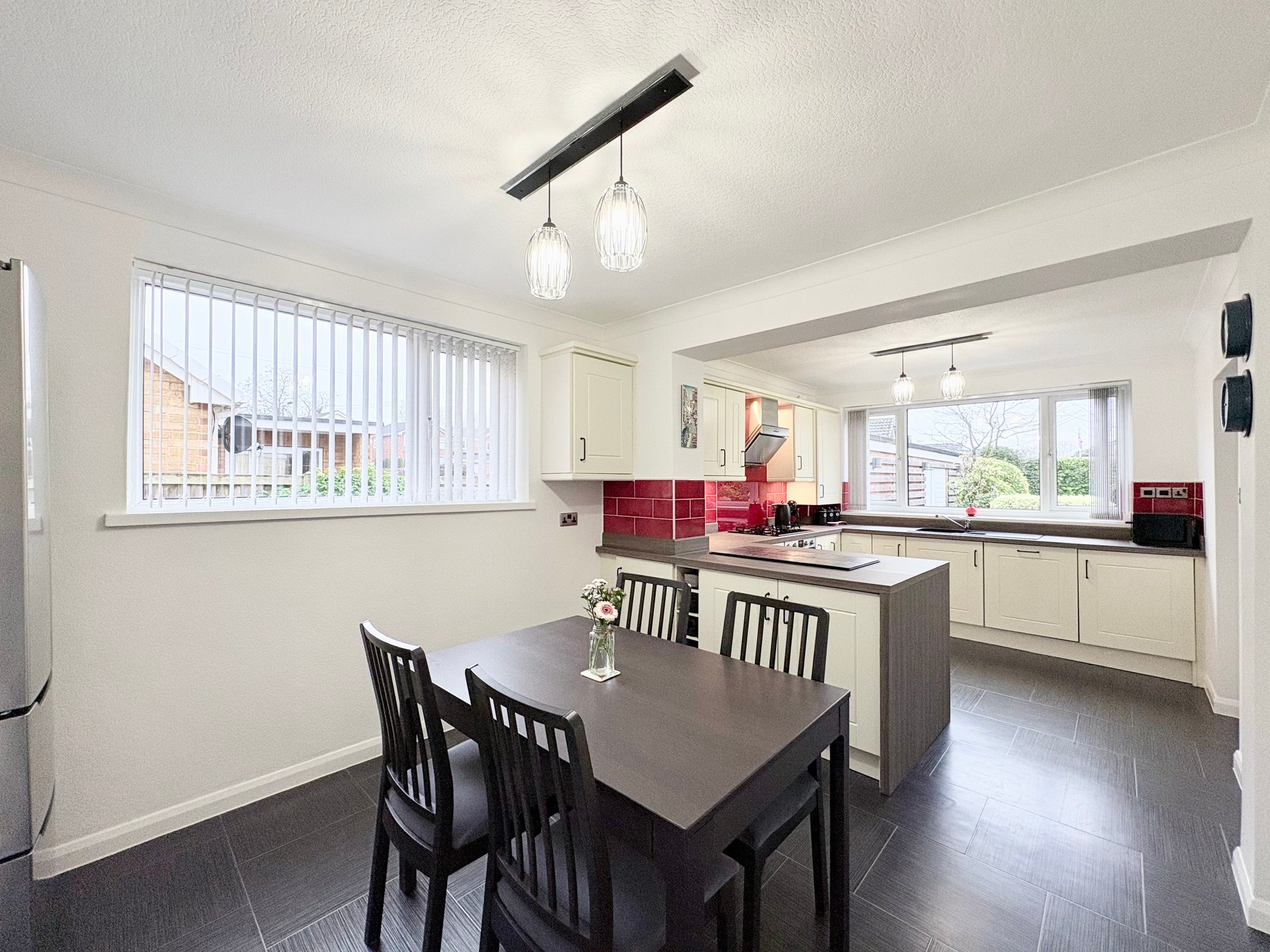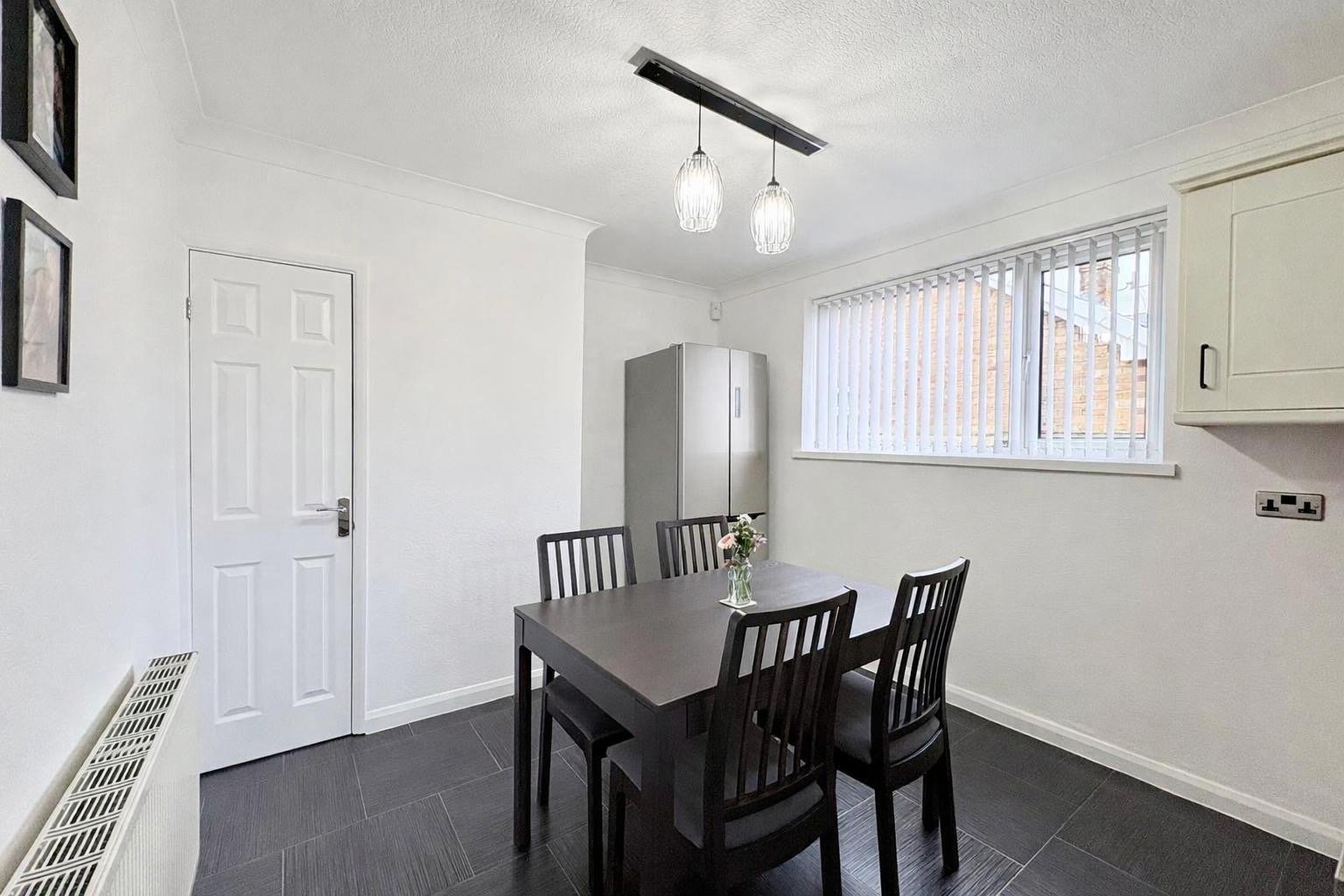 The dining area enjoys a pleasant side aspect window and offers ample space for a full dining suite along with a freestanding fridge freezer if required. A door from here leads directly into the garden room, creating a natural flow between the living and entertaining spaces.