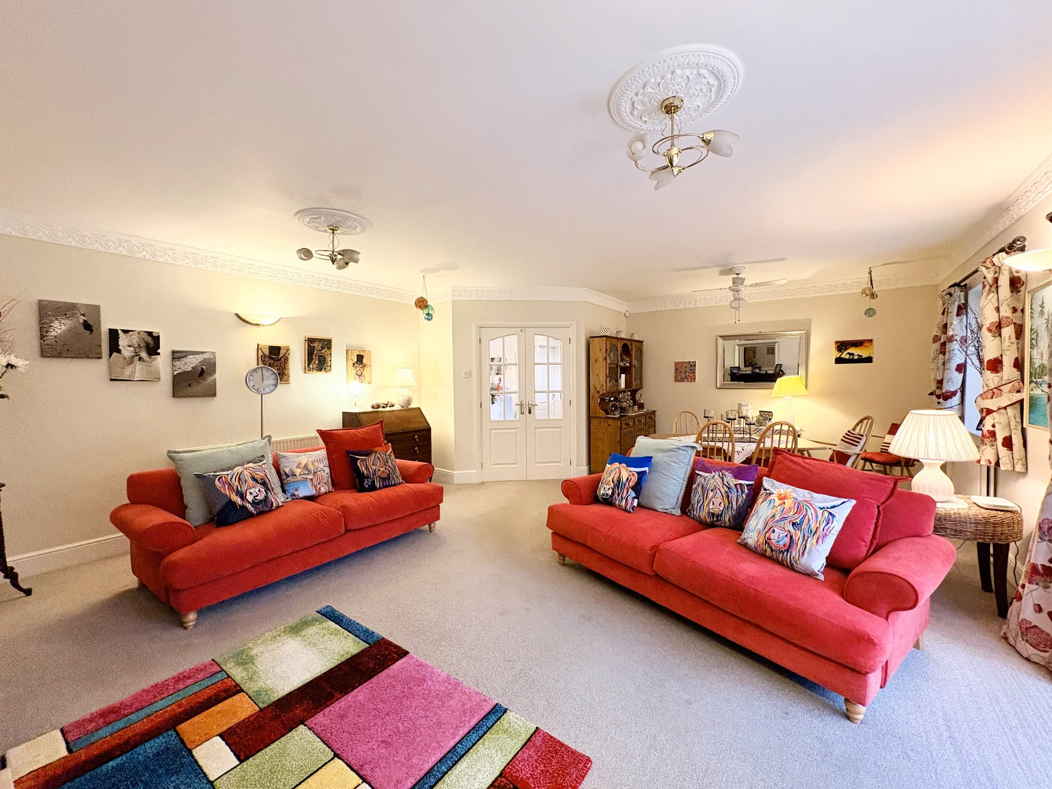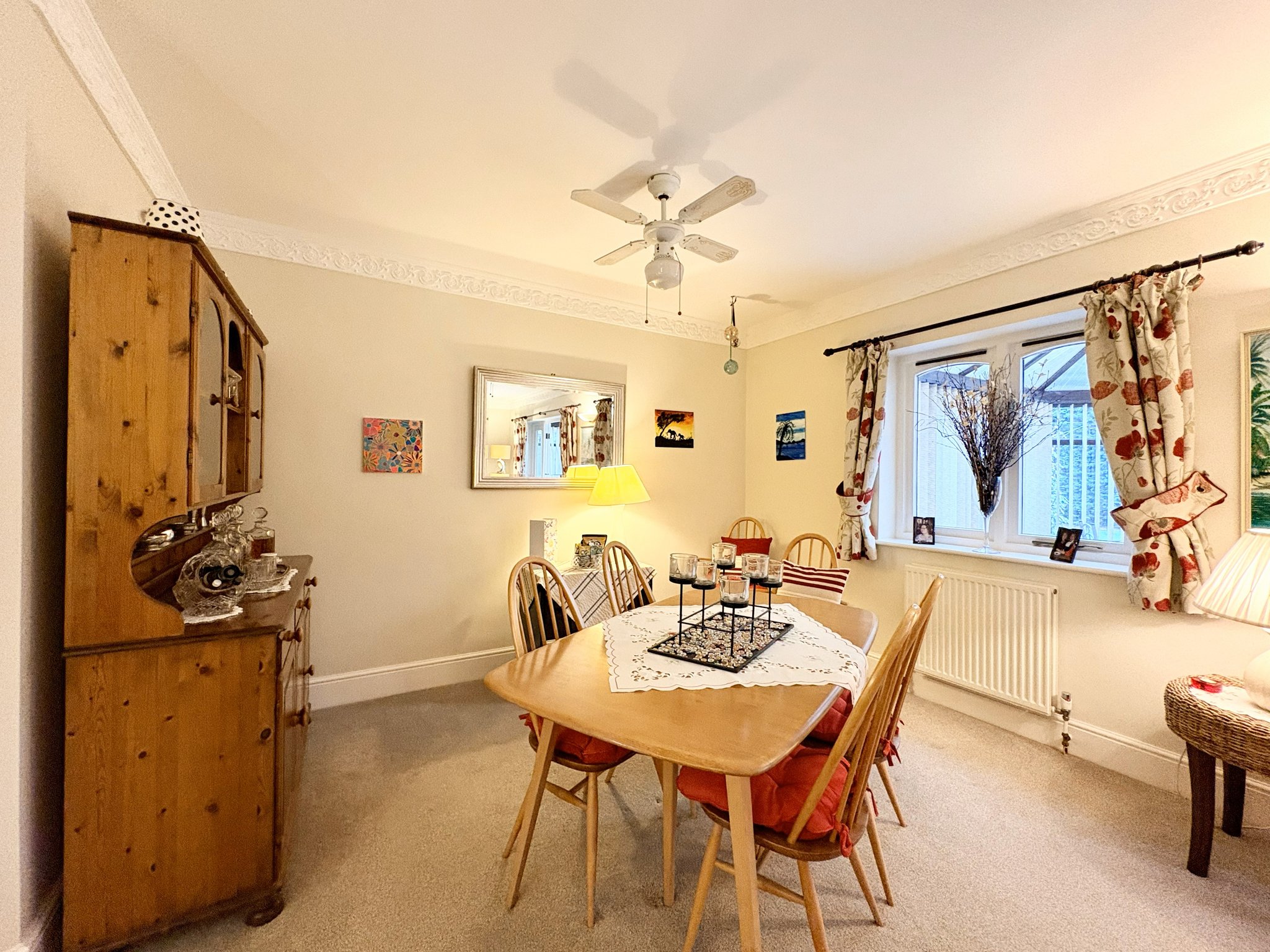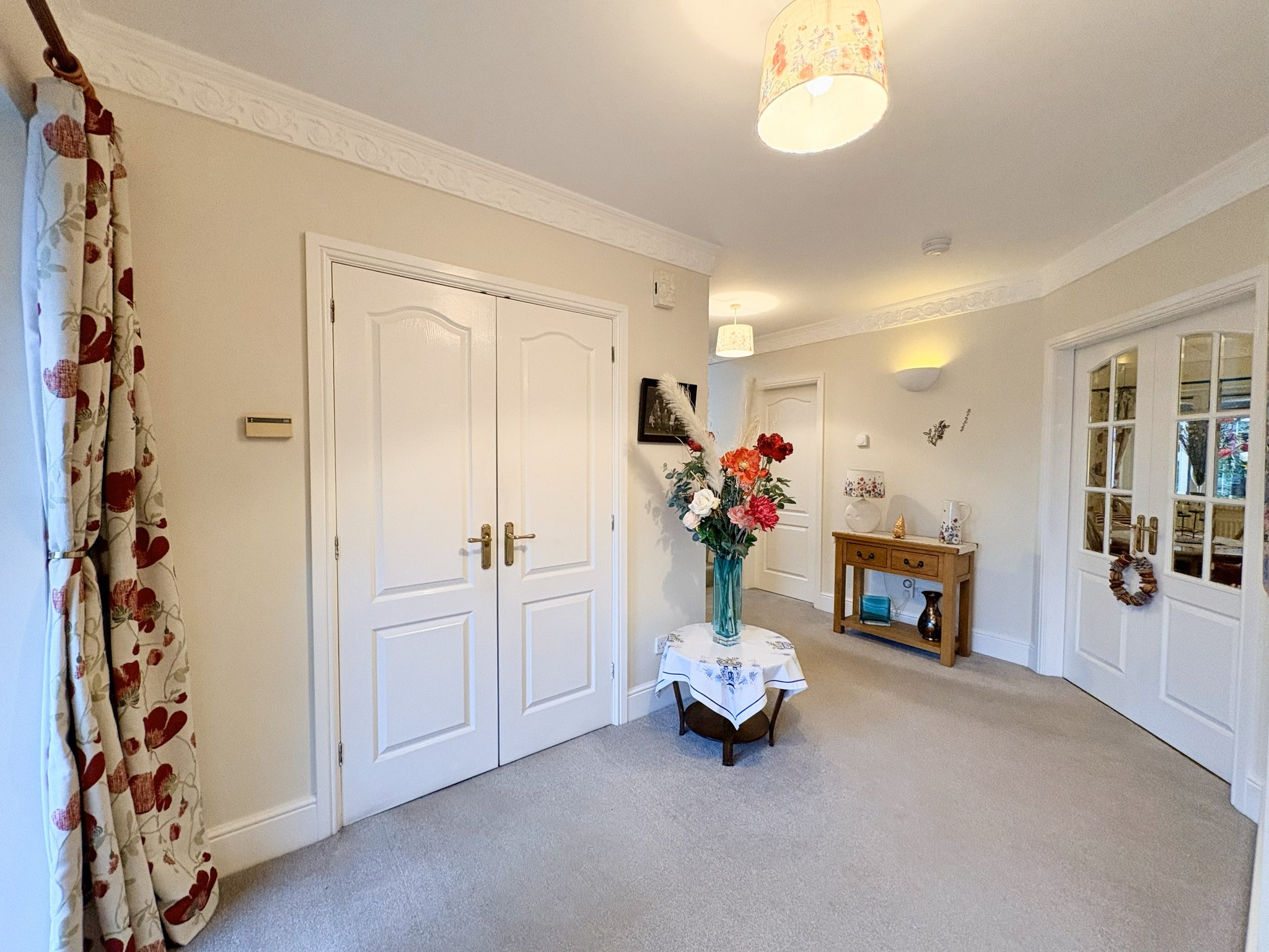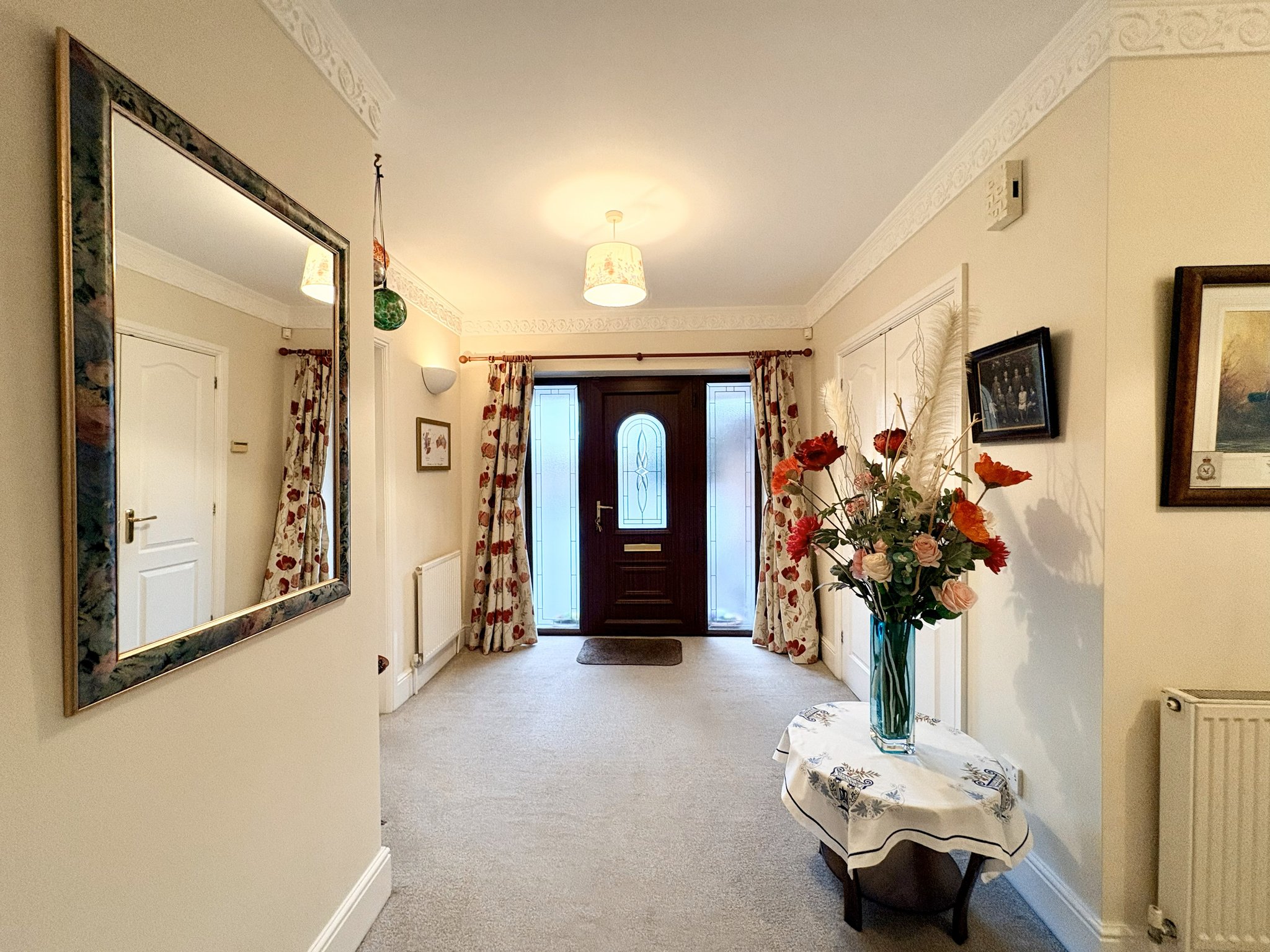 A grand and welcoming entrance hallway provides access to the ground floor accommodation. Featuring fitted carpet to floor, a large cloak cupboard which provides idea space for plenty of coats and shoes, a further under stair storage cupboard, three single pendant light fittings and two radiators.