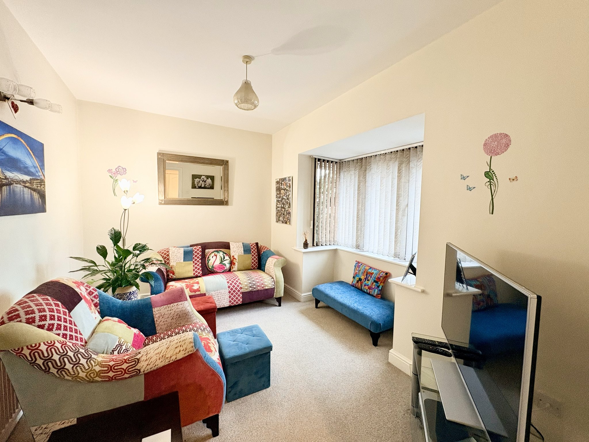 The front-aspect reception/snug offers a versatile space ideal for a play room, office or additional relaxation area, with feature bay window, carpeted flooring, radiator and single pendant light fitting.