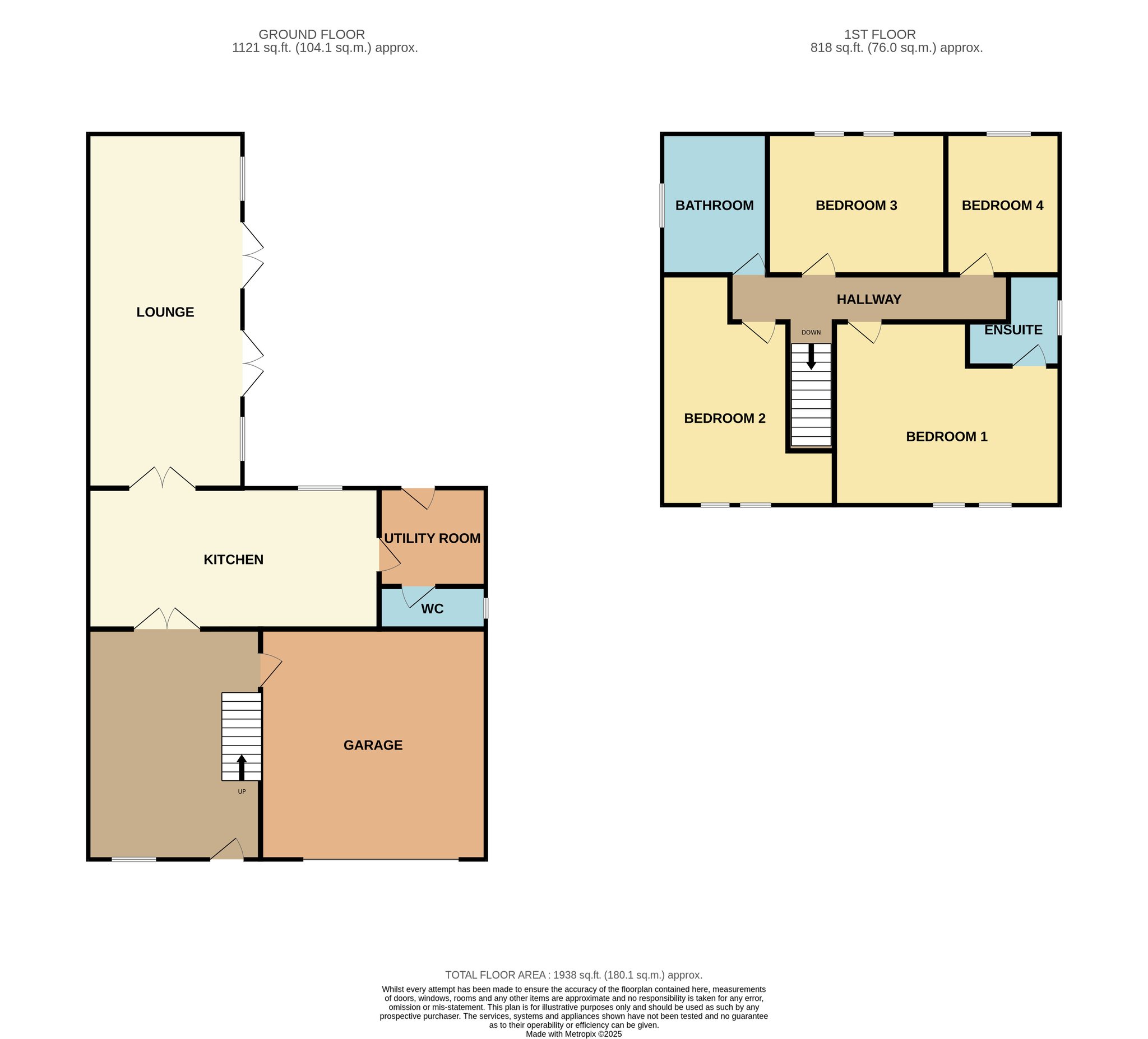 To the first floor, there are 4 double bedrooms, ensuite and family bathroom. The landing is fitted with carpet, there is loft access and 2 single pendant light fittings.