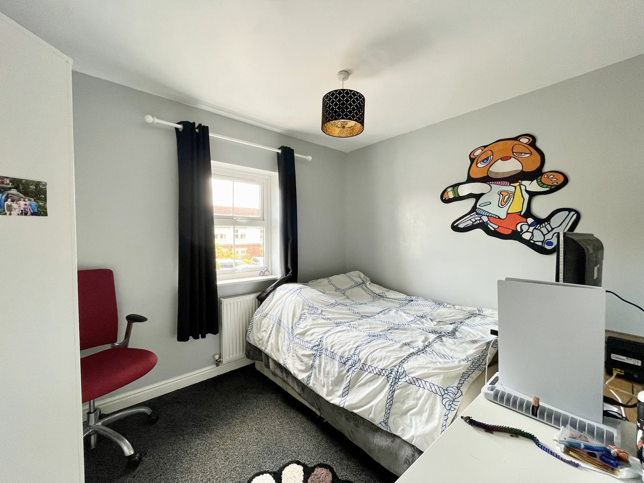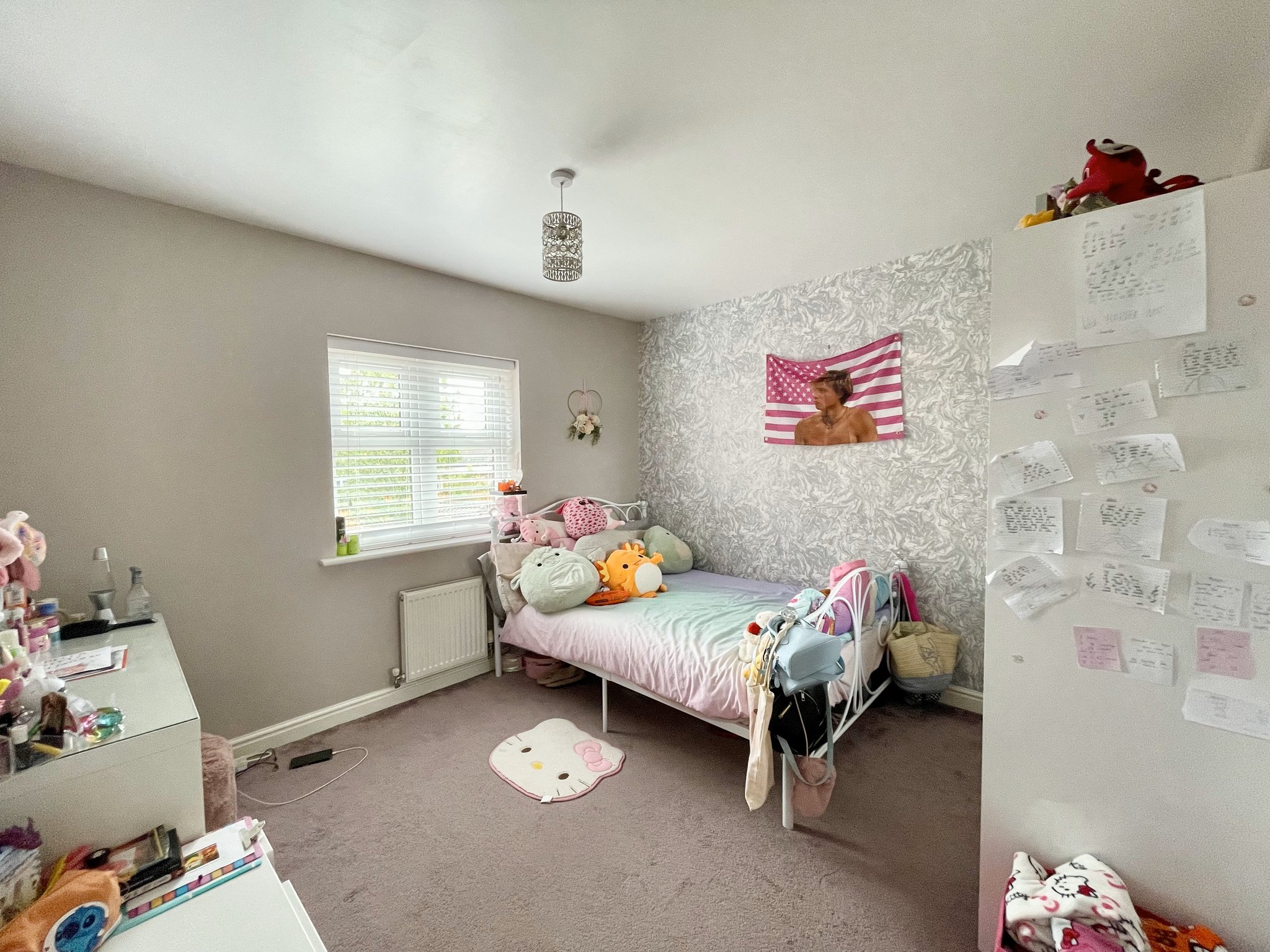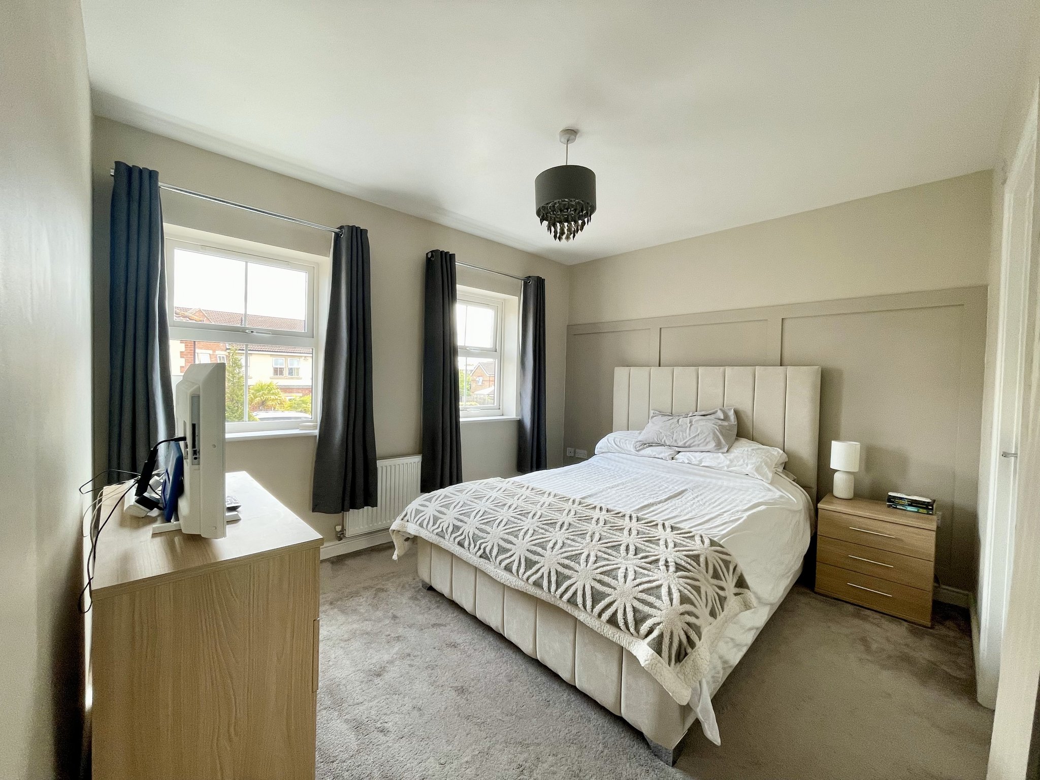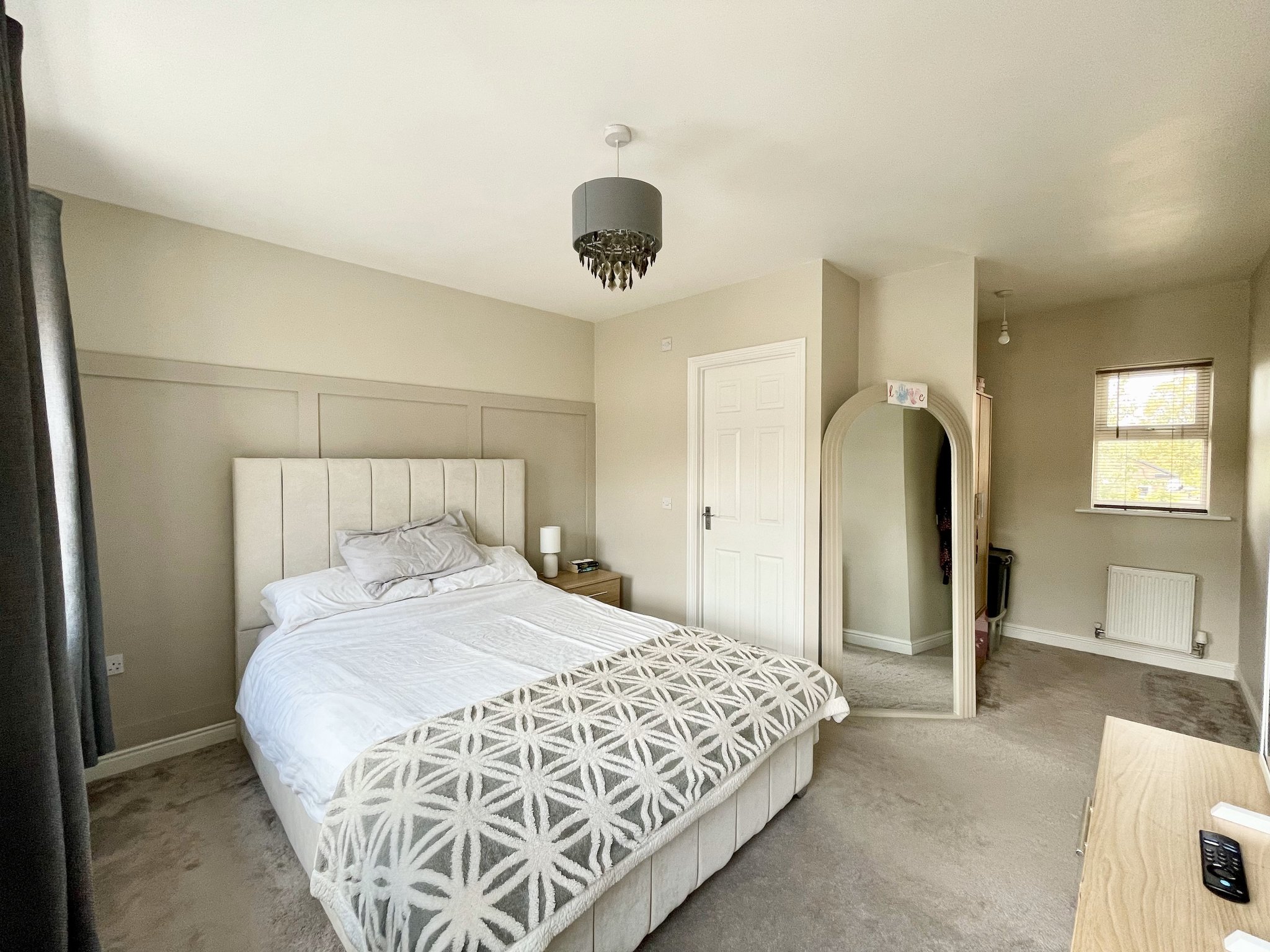 The Principal bedroom benefits from a beautifully upgraded private en suite, finished in a crisp contemporary style and a walk in dressing area. Fitted with carpet to the floor, single pendant light fitting and radiator.