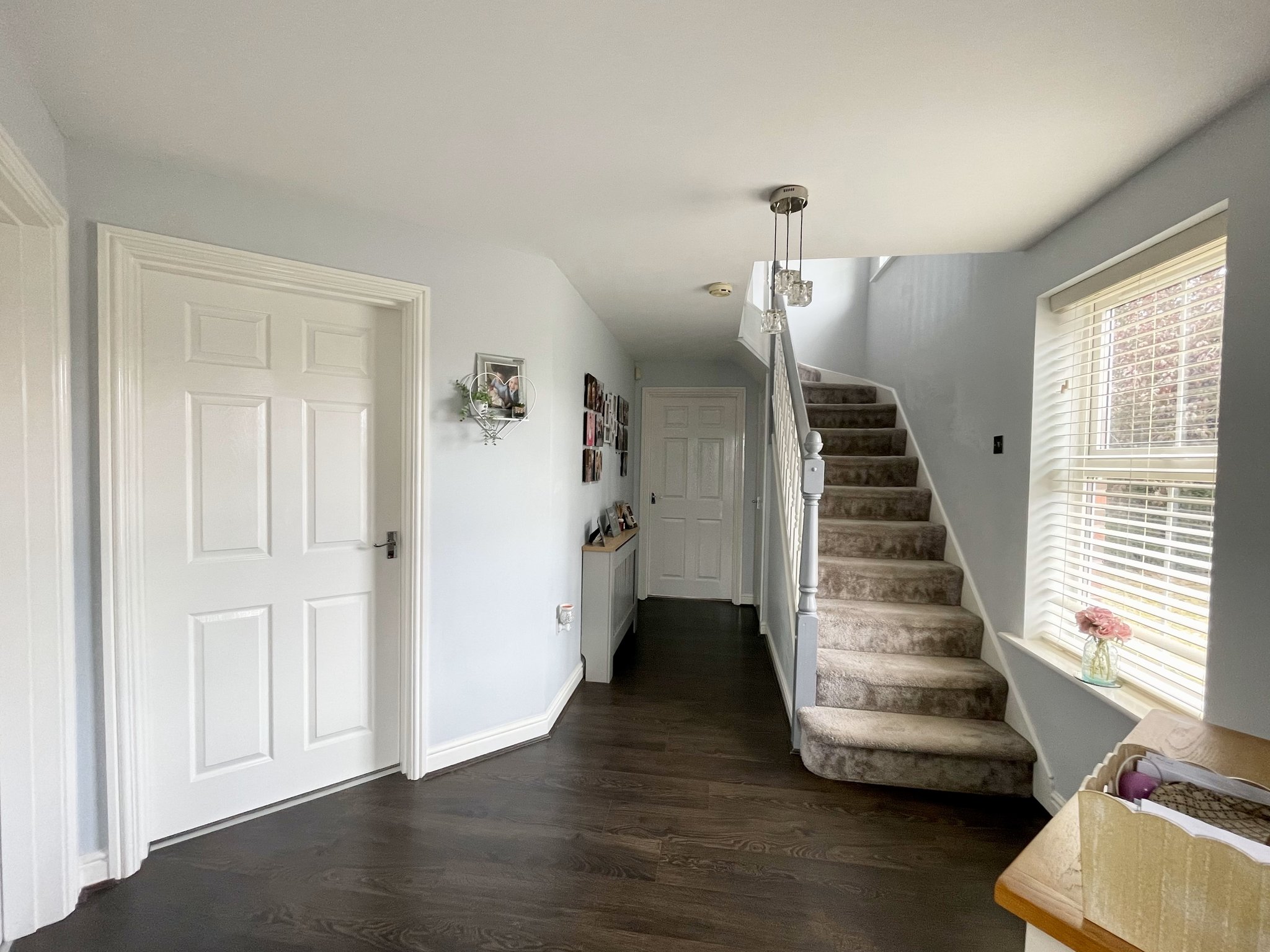 From the moment you step inside, the spacious entrance hall creates a welcoming first impression, with access to a bright and comfortable main lounge, dining room, breakfasting kitchen and stairs to the first floor accommodation. Wood effect laminate flooring, single pendant light fitting, storage cupboard and radiator.