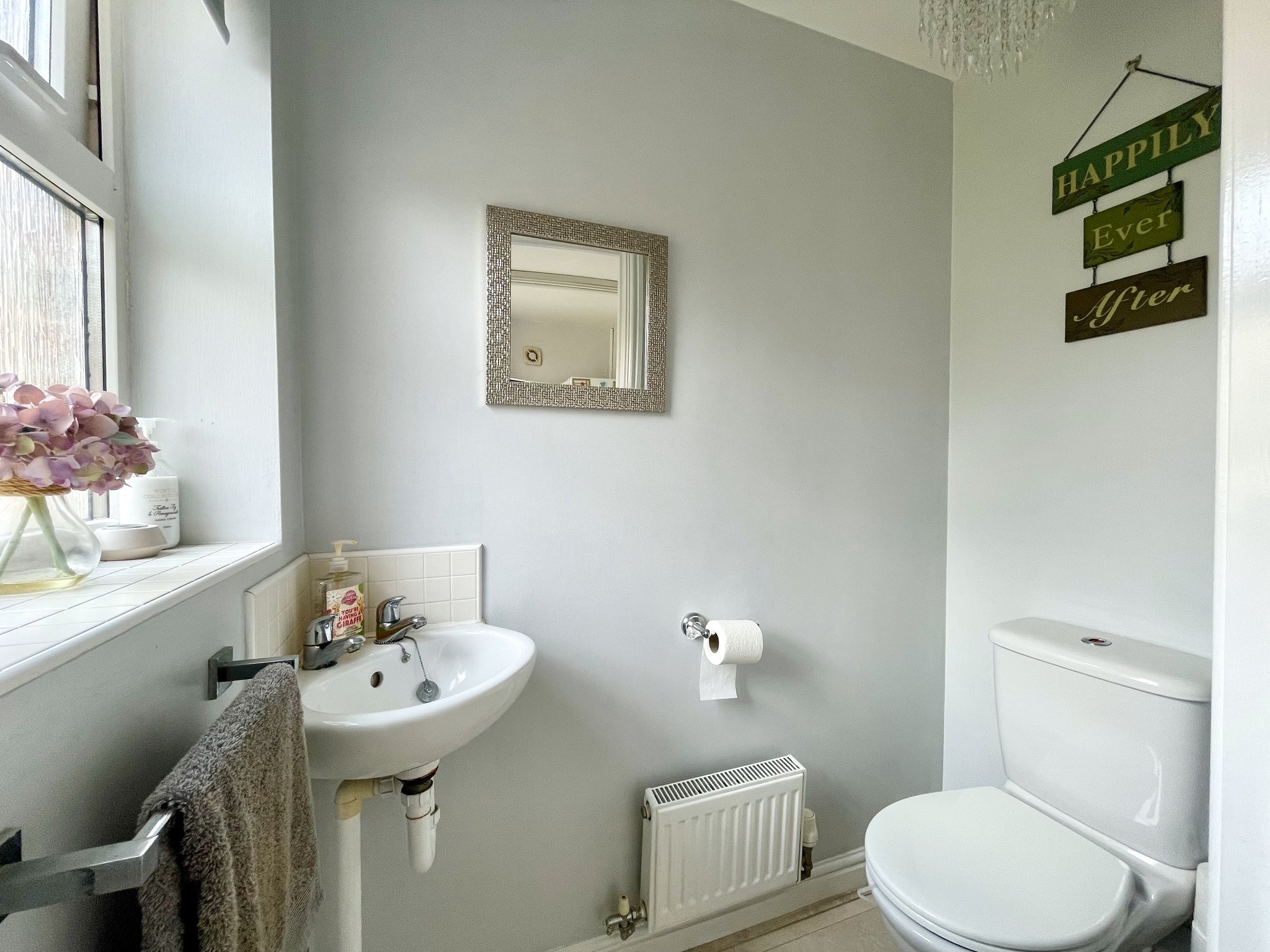 The downstairs cloakroom adds practicality for everyday family living with hand basin, radiator and rear aspect window.