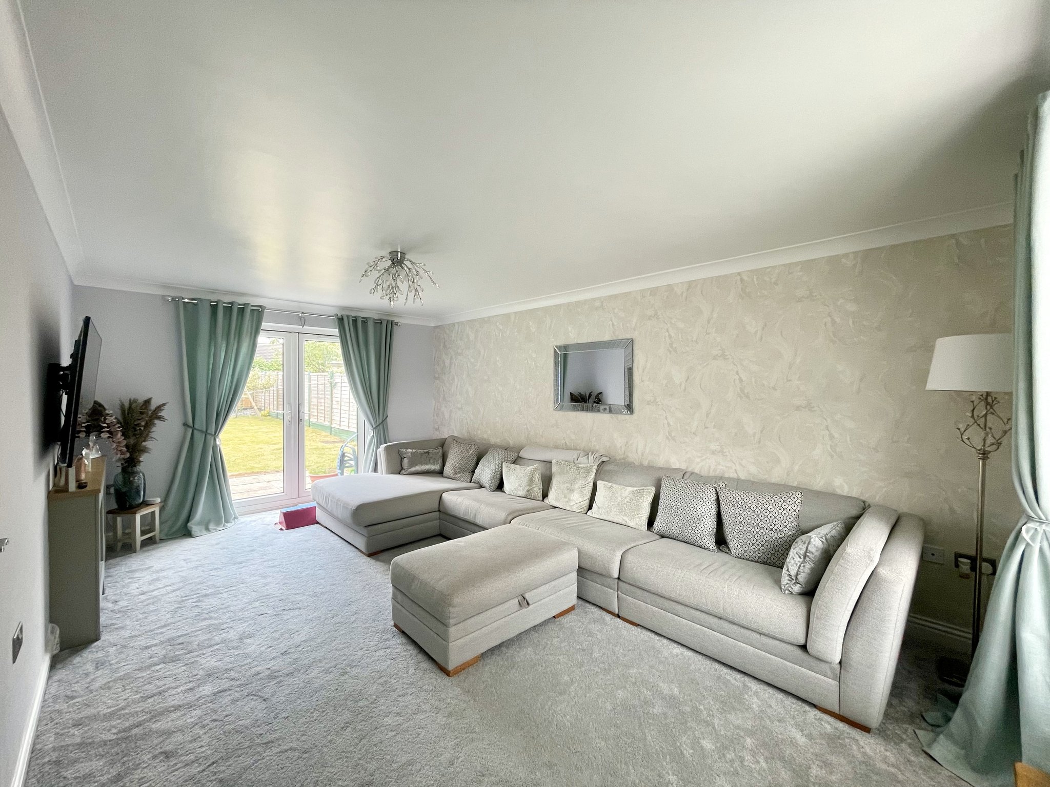 The lounge featuring French doors that open directly onto the rear garden and a large bay window, ensures this room is filled with natural daylight. With Carpet, radiator and single pendant light fitting.