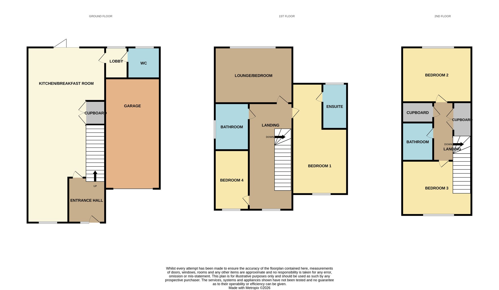 3Keys Property are delighted to present this beautifully presented, ready-to-move-into five-bedroom detached home, located on the highly sought-after Avant Homes development in Wheatley Hills, Doncaster. Arranged over three spacious floors, this larger-than-average property offers modern, flexible living ideally suited to contemporary family life. The ground floor features an impressive open-plan kitchen, living, and dining area, flooded with natural light and benefiting from bi-fold doors opening onto a landscaped rear patio—perfect for entertaining. A convenient ground-floor WC completes this level. The first floor offers a versatile lounge or additional bedroom, a generous master bedroom with en-suite shower room, a further well-proportioned bedroom, and a stylish family bathroom with walk-in shower. On the top floor, there are two spacious double bedrooms, a second family bathroom with bath, and useful storage space, making it ideal for growing families or guest accommodation. Externally, the property boasts a well-maintained rear garden, driveway parking for two vehicles, and a single garage. This is a substantial family home offering versatile accommodation across three floors in a highly desirable location.