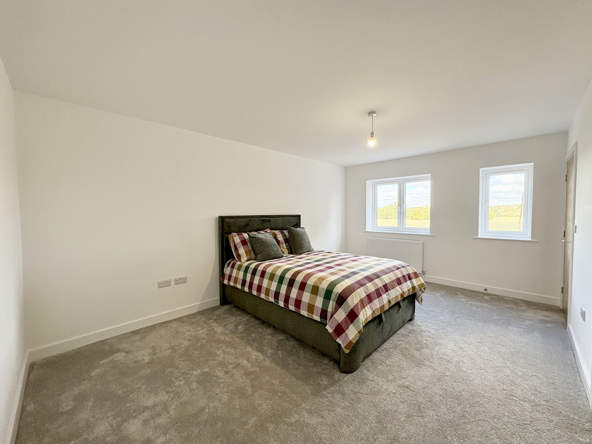 Bedroom three is a bright and airy double room with two rear-facing windows that offer beautiful views over the open fields behind the property. The room is finished with fitted carpet and a single pendant light fitting making it a comfortable and practical space.