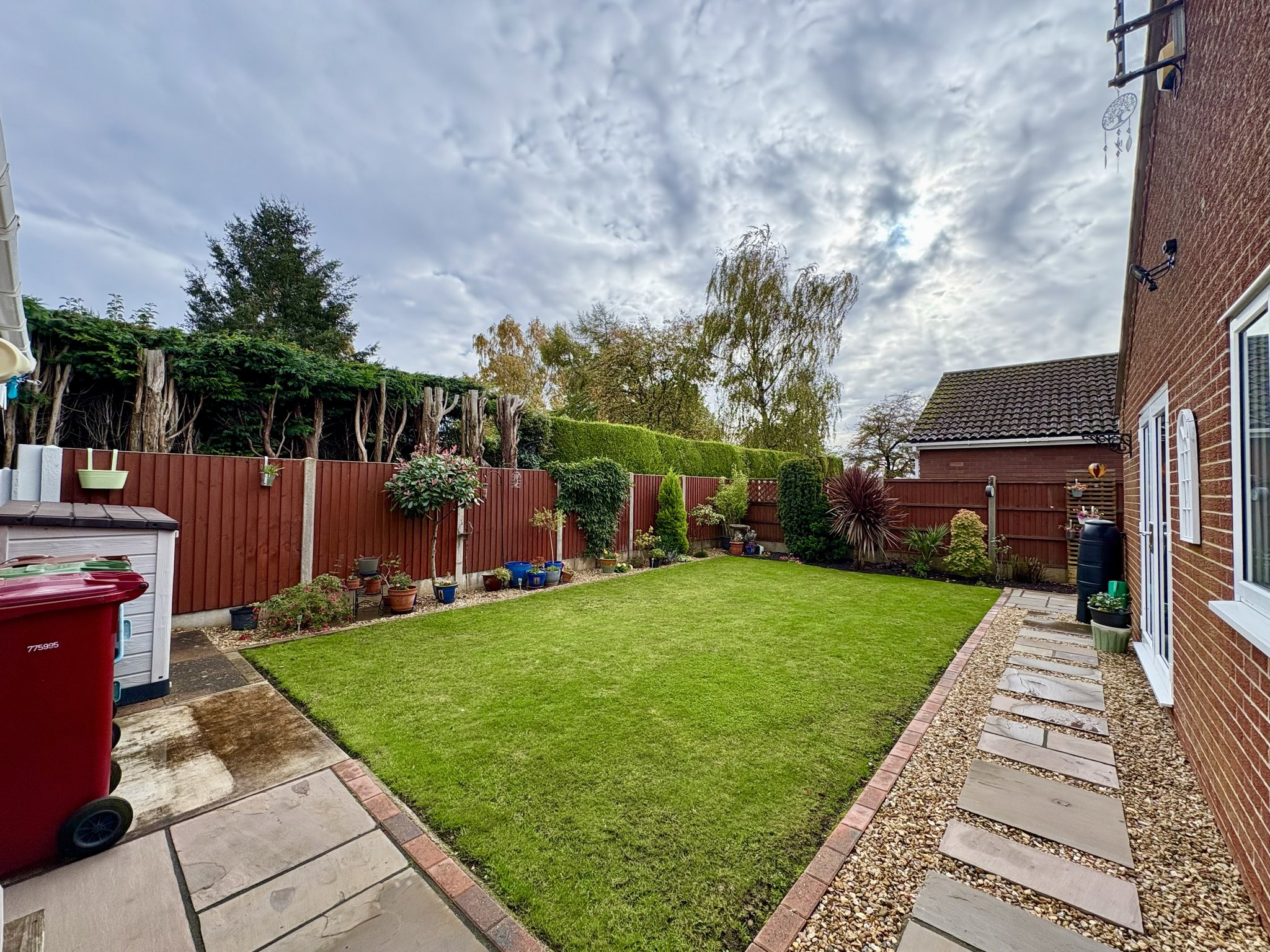 Outside, the front garden is a mix of paving and gravel for ease of maintenance and parking. The private rear garden is mainly laid to lawn and framed by mature shrubs and flower beds, while a side garden features a beautiful patio, providing the perfect place for relaxing in the sun.